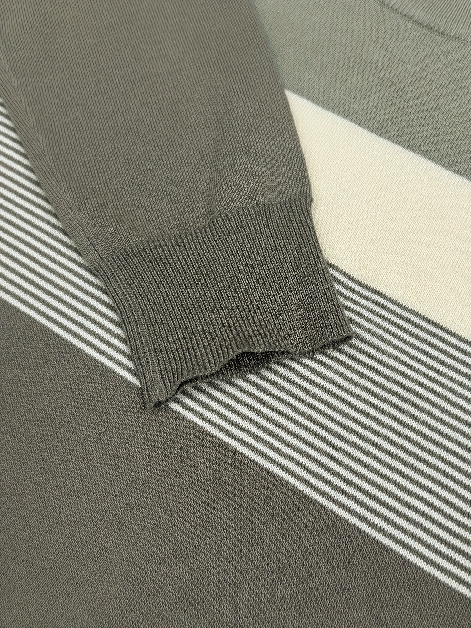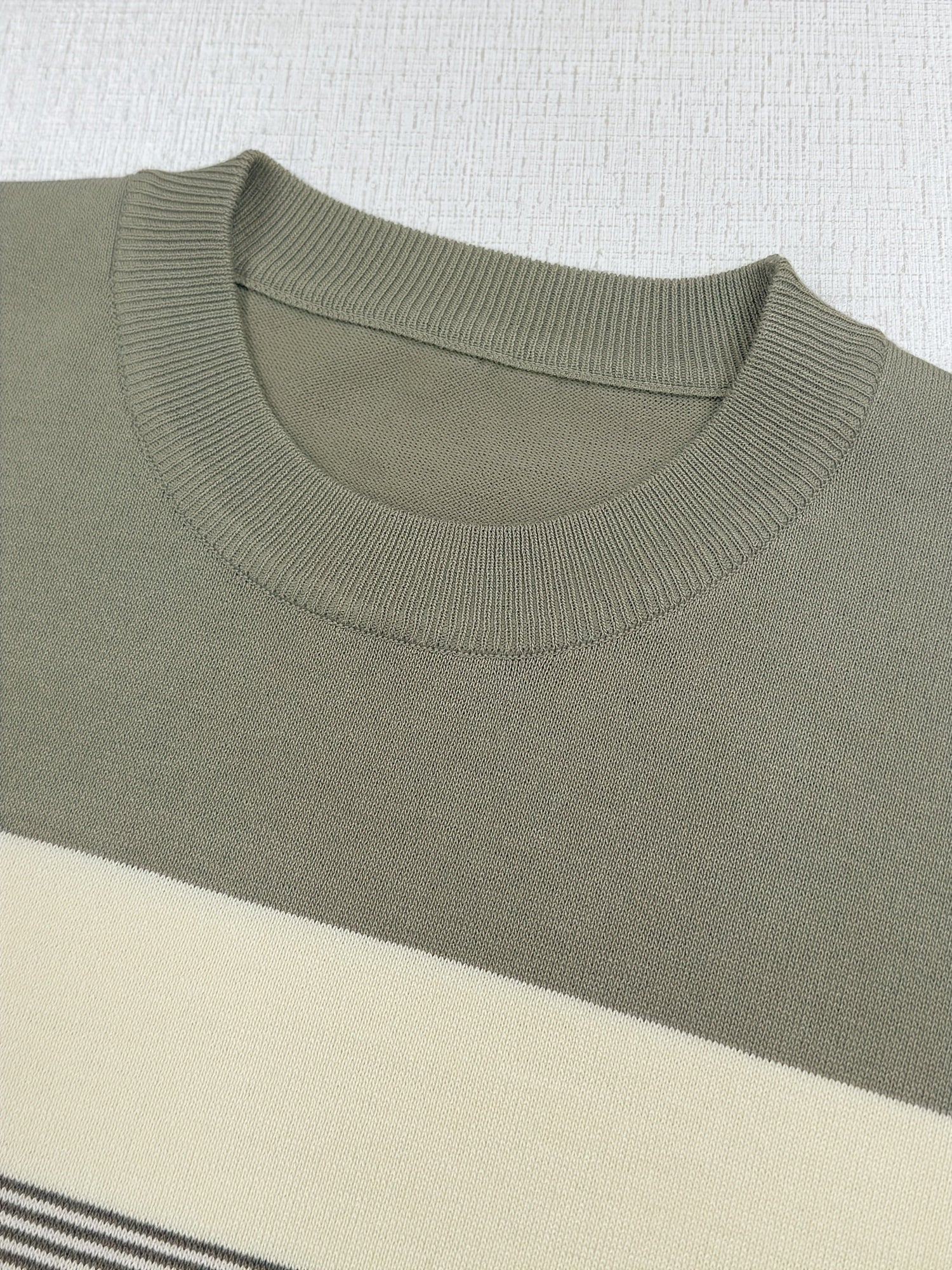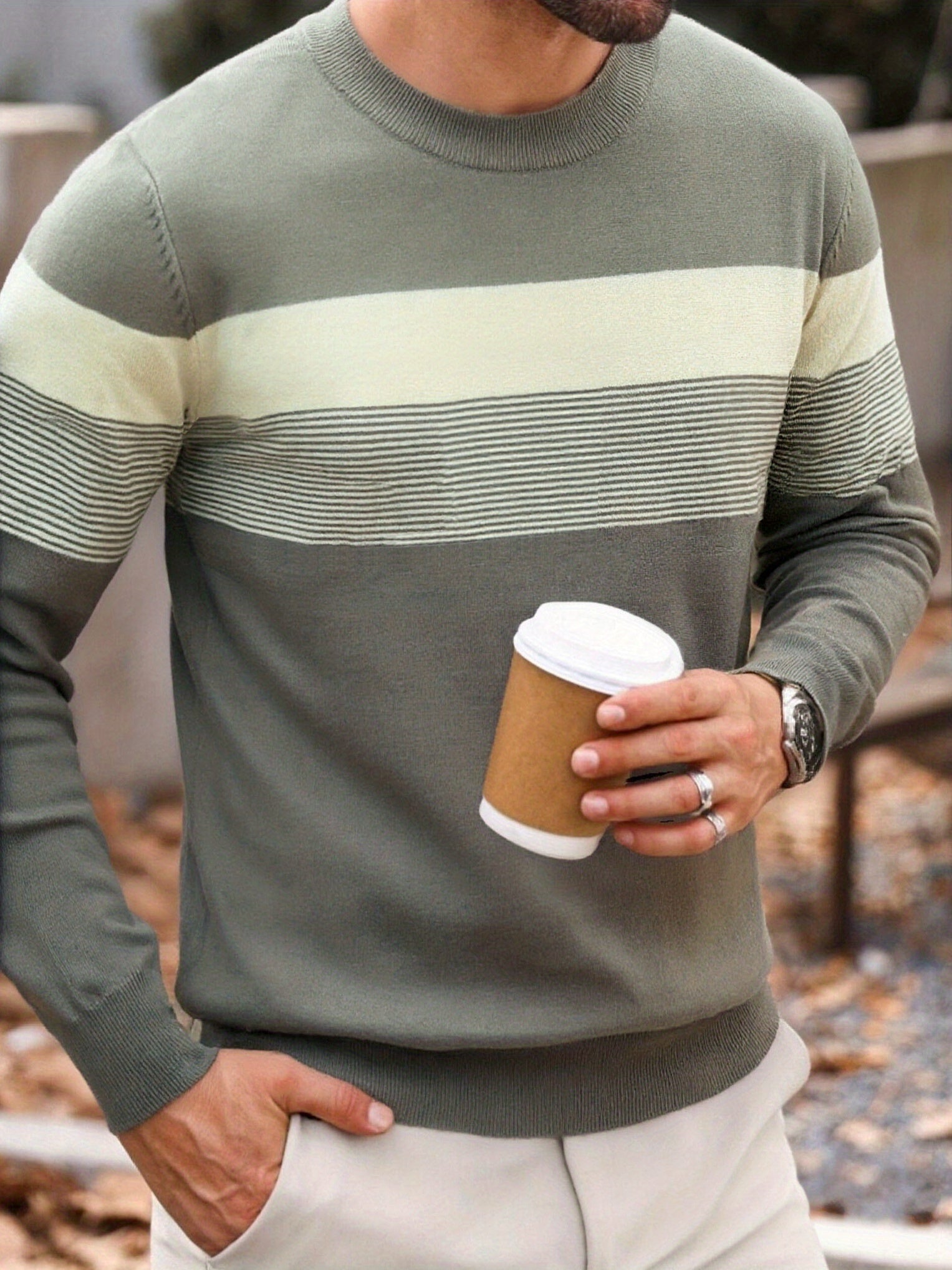 Suéter tipo jersey de punto a rayas para hombre – Clásico, manga larga, cuello redondo