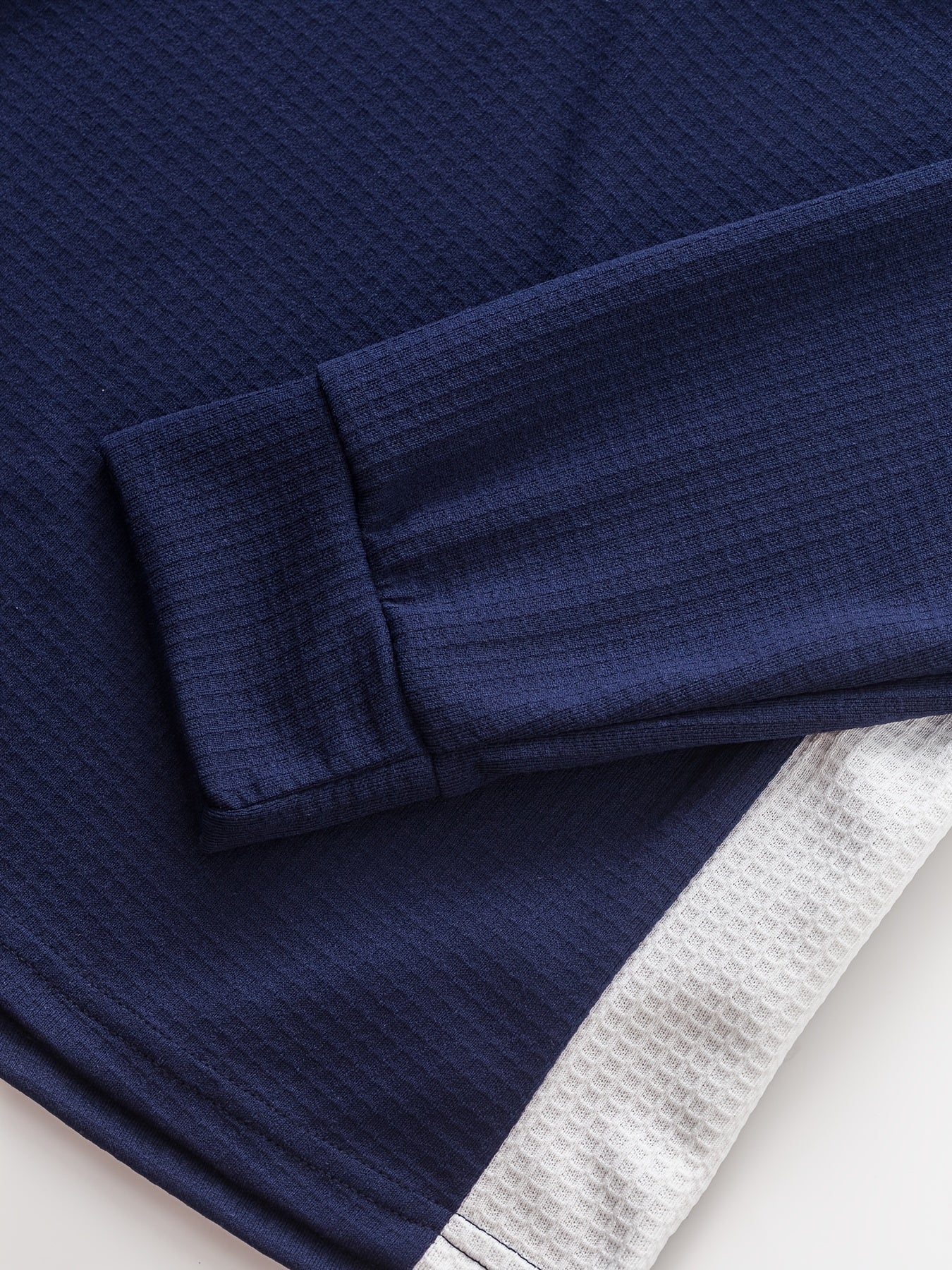 The waffle-weave fabric adds dimension and comfort, while the Henley neckline with button detail gives it a refined, athletic edge. Perfect for layering or wearing solo, this lightweight long-sleeve top transitions seamlessly from business-casual meetings to weekend outings and even outdoor adventures.