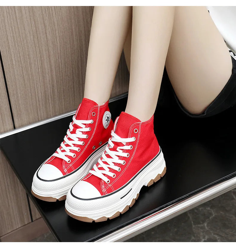 Step up your streetwear game this season with the Loom & Soul 2024 Women’s High-Top Canvas Sneakers — where timeless design meets modern comfort. These sneakers feature a durable vulcanized rubber sole, canvas upper, and 3–5 cm platform that adds height without sacrificing flexibility.