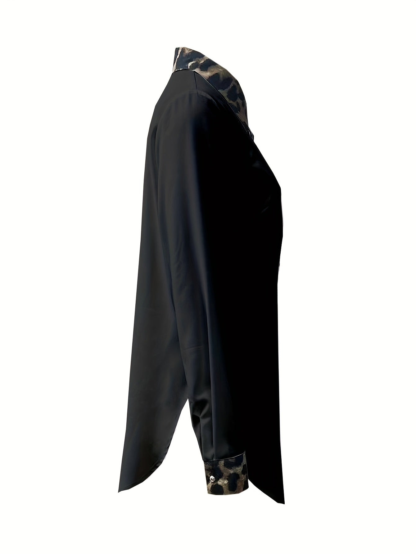 Women’s Contrast Leopard Shirt – Button-Front Long Sleeve Blouse