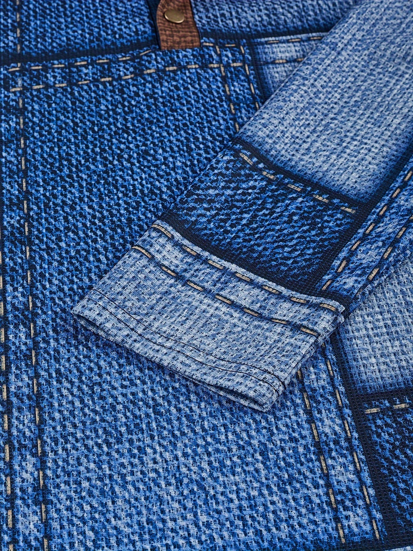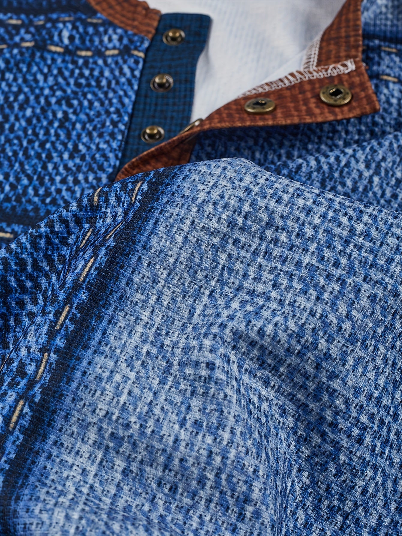 Men’s Geometric Henry Shirt – Long Sleeve Casual Crew Neck Top