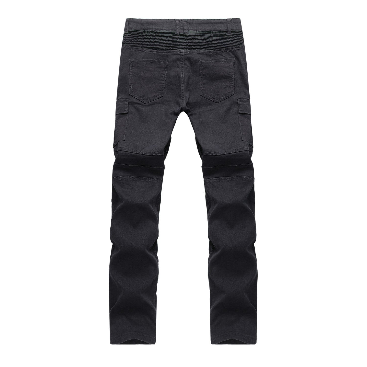 Loom & Soul Men’s Motorcycle Trousers – Slim-Fit Biker Jeans with Ribbed Knee Folds and Mid-Waist Design