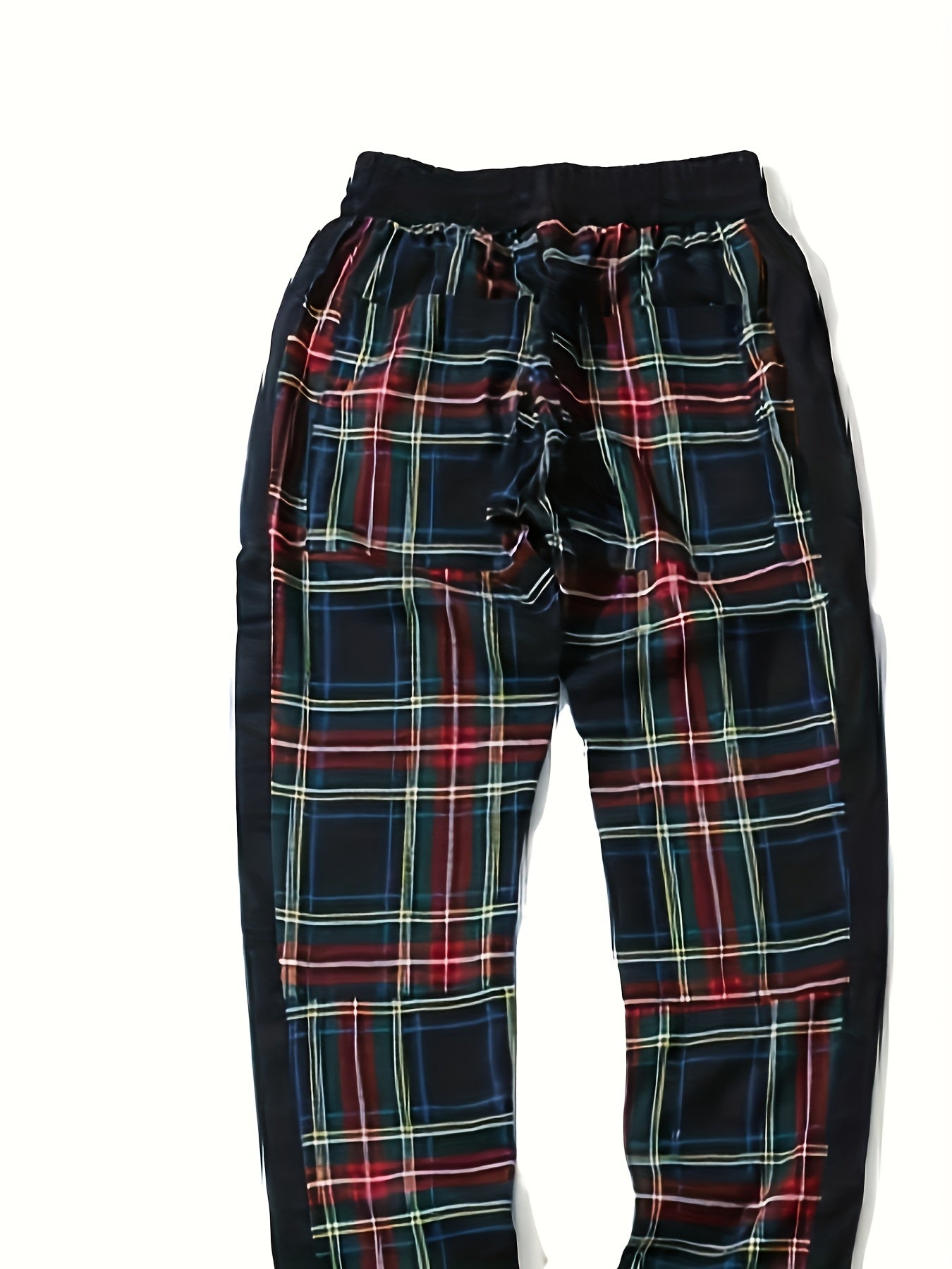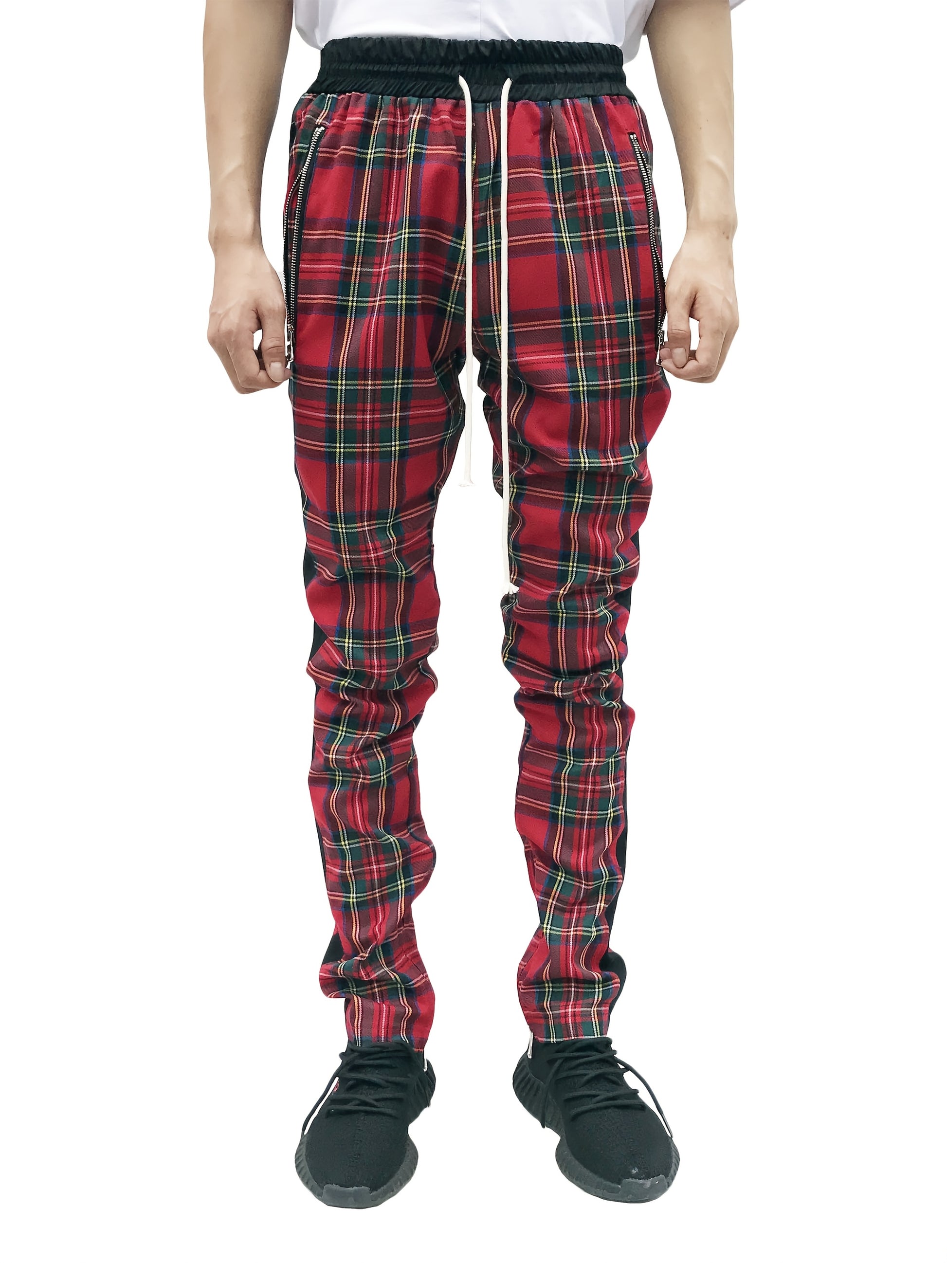 Men’s Red & Black Plaid Joggers – 3D Knit Streetwear Trousers