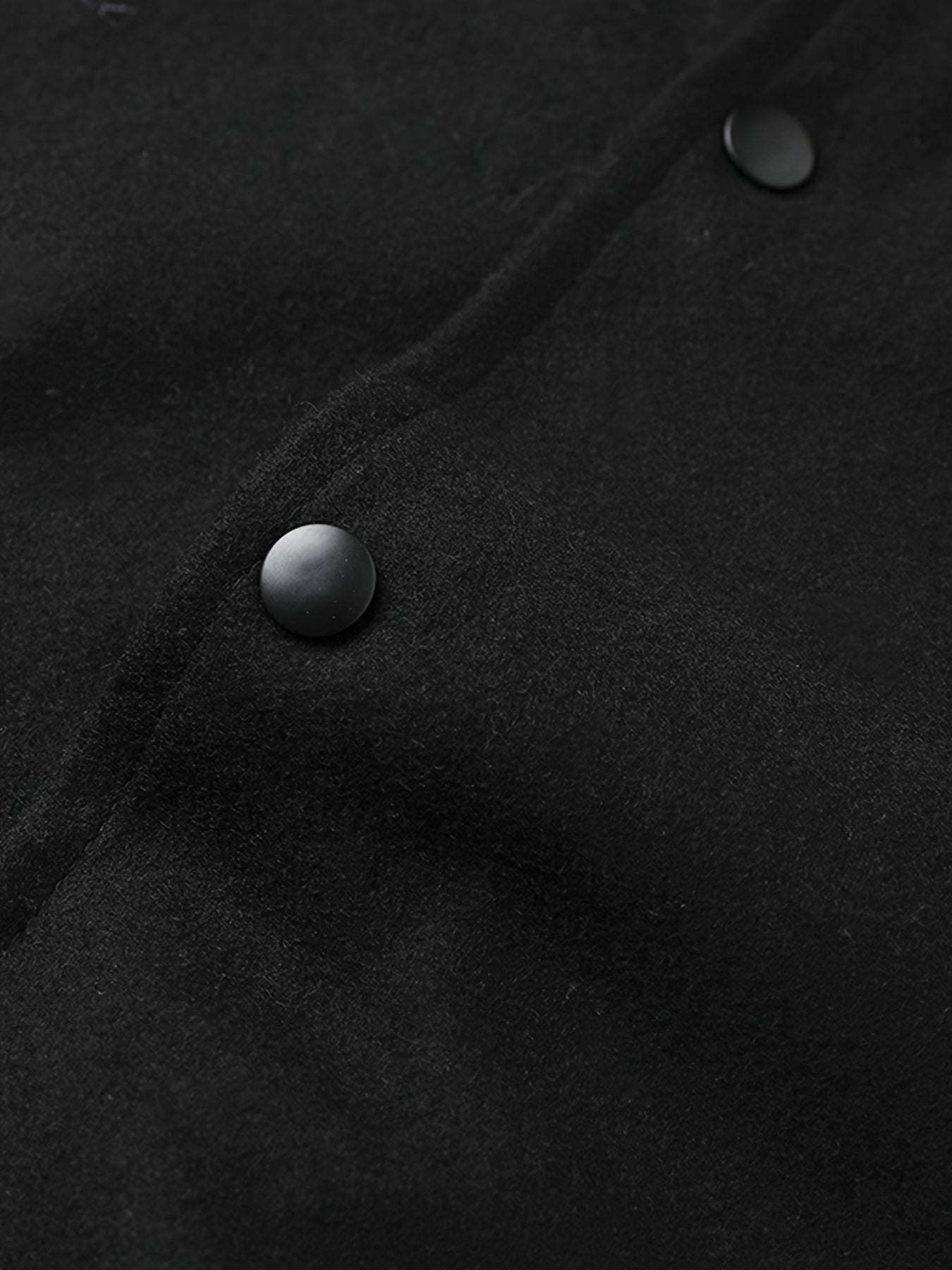 Made from a premium wool-polyester blend (27% wool, 63% polyester, 10% fibers), it offers a soft, insulating feel without sacrificing structure. The embroidered detailing adds a signature retro edge, while the baseball collar, drop shoulders, and regular fit create a relaxed yet refined silhouette.
