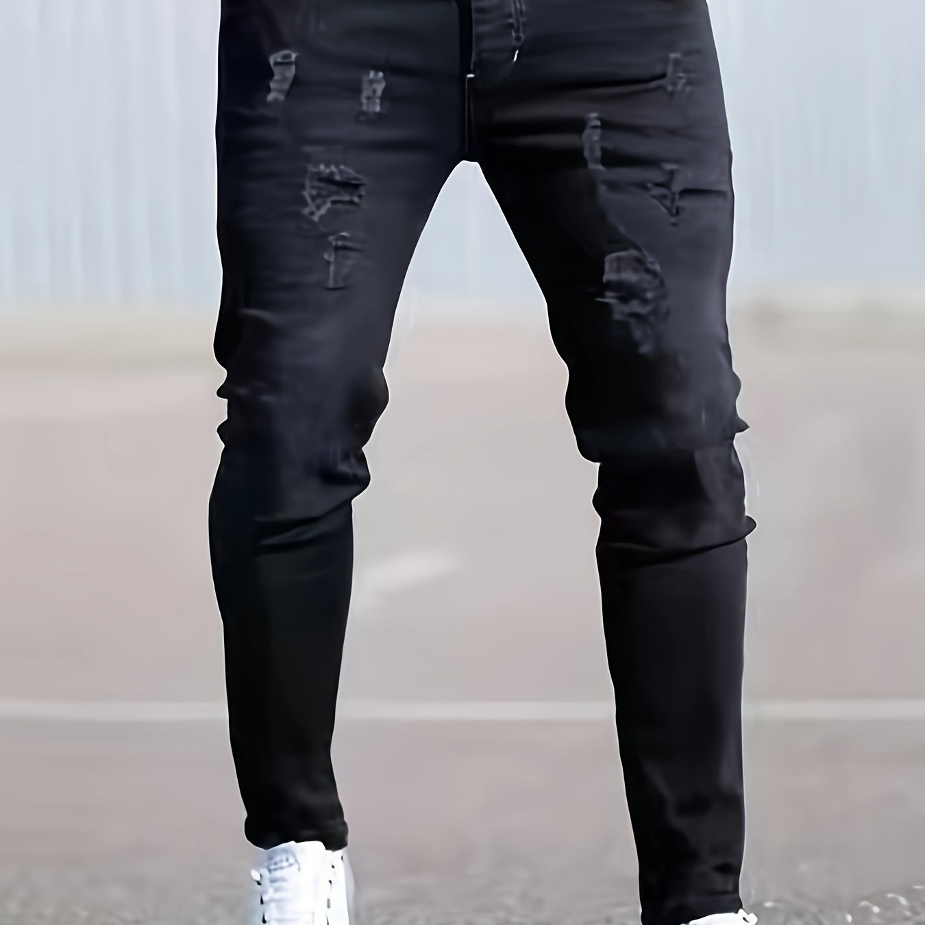 Men’s Black Distressed Skinny Jeans – Ripped Stretch Denim for All Seasons