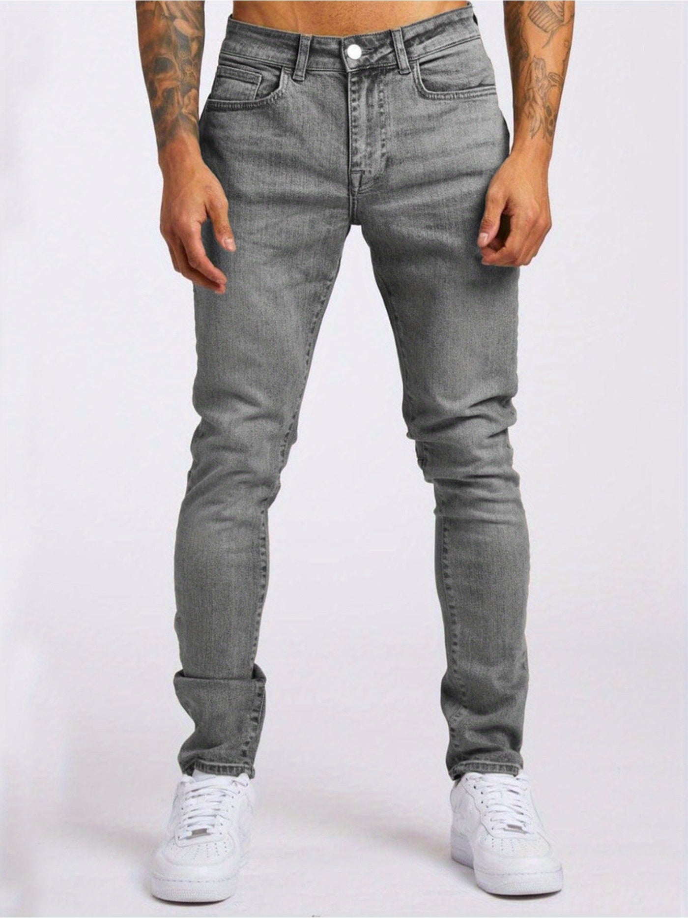 Men’s Gray Slim-Fit Stretch Jeans – Breathable, Modern All-Season Denim