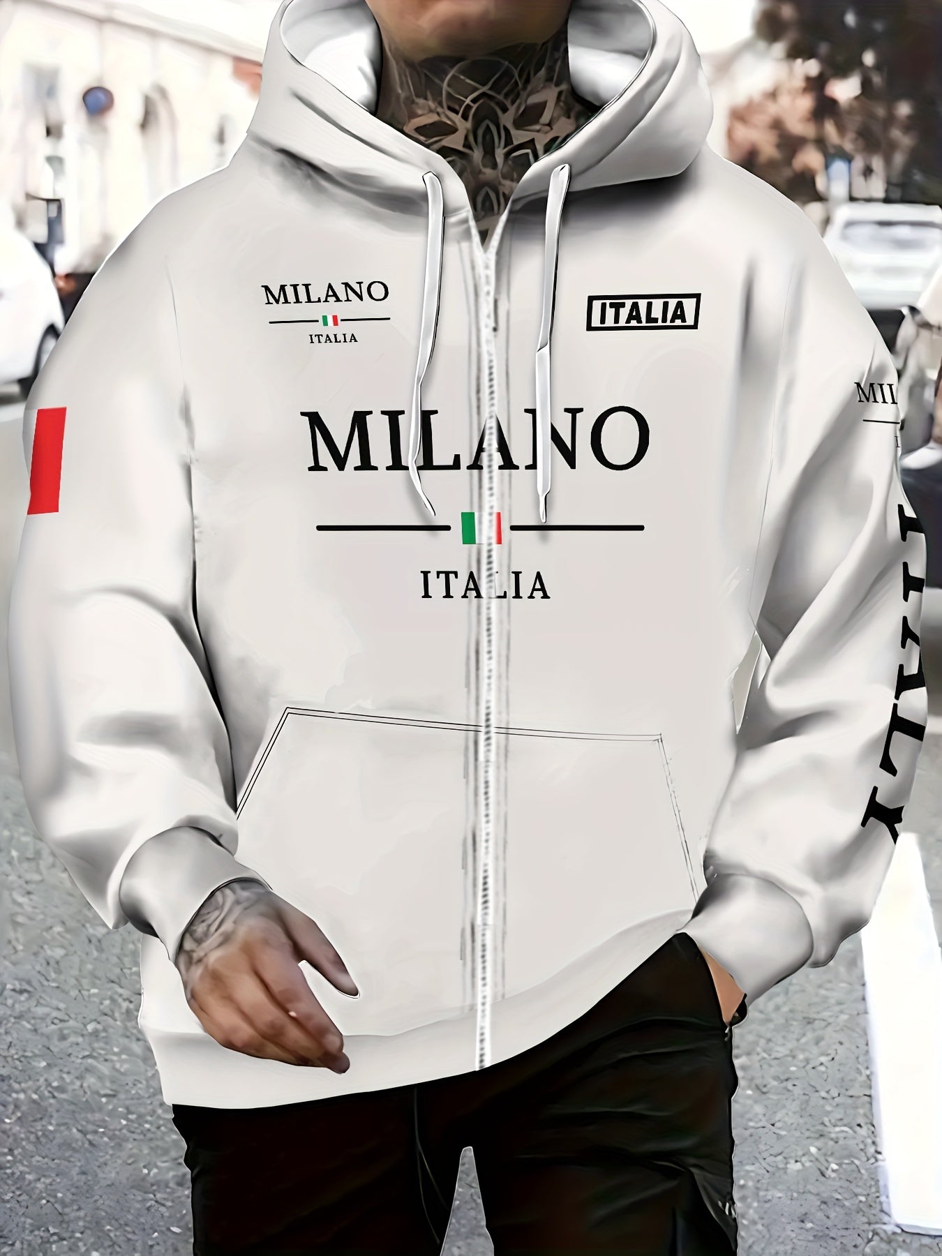 The Loom & Soul Men’s Italian-Inspired Hooded Sweatshirt blends refined street style with casual comfort. Featuring the iconic red and green stripe detail and bold Italian text print, this hoodie adds a touch of European flair to your daily wardrobe.