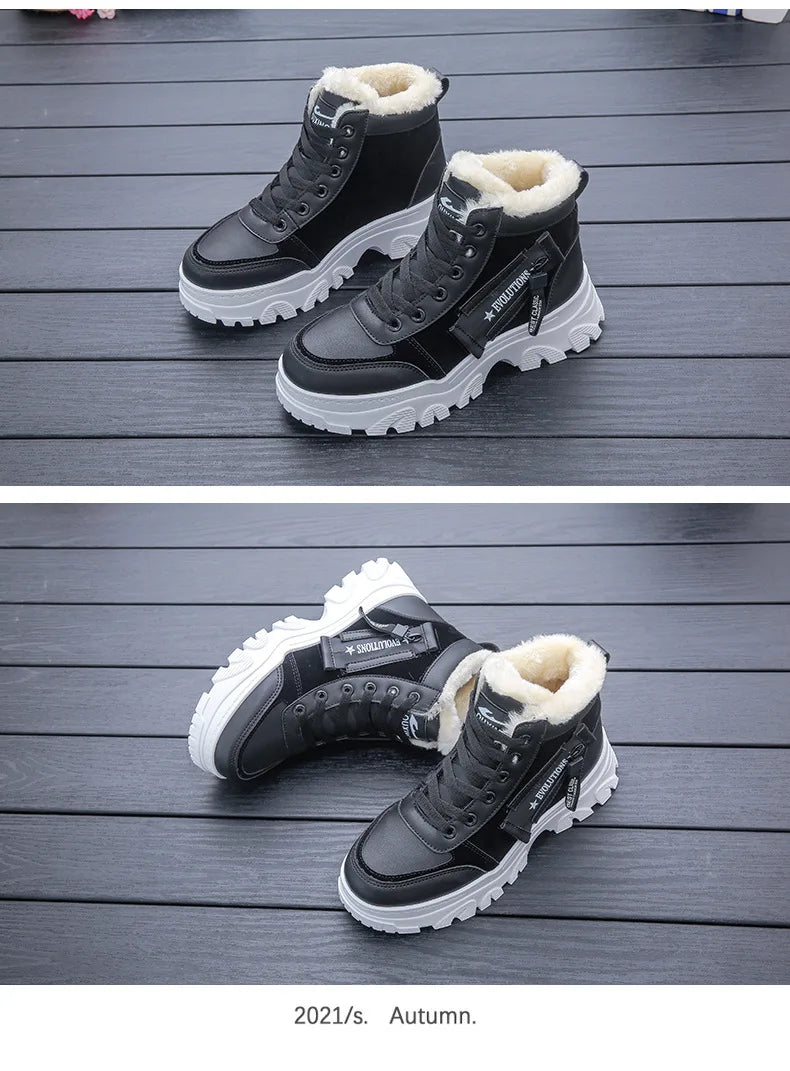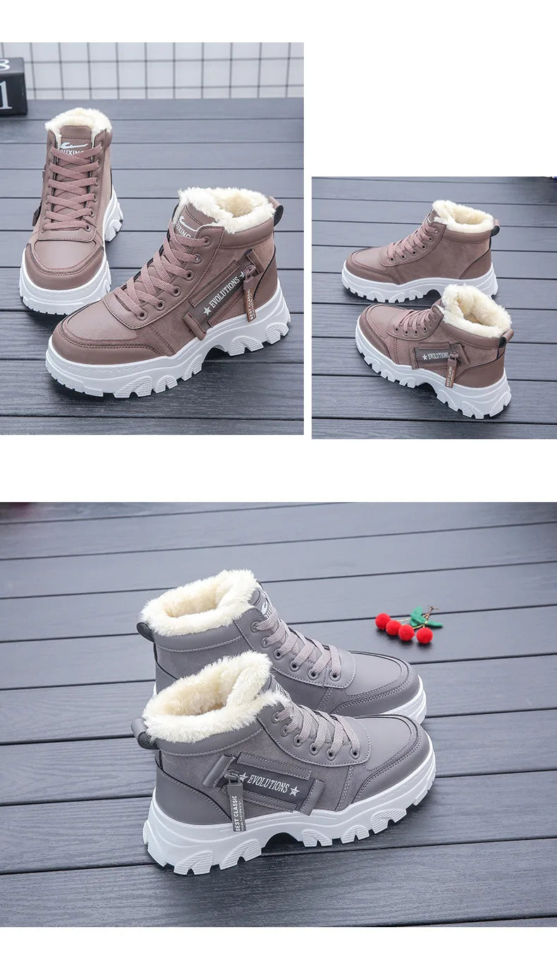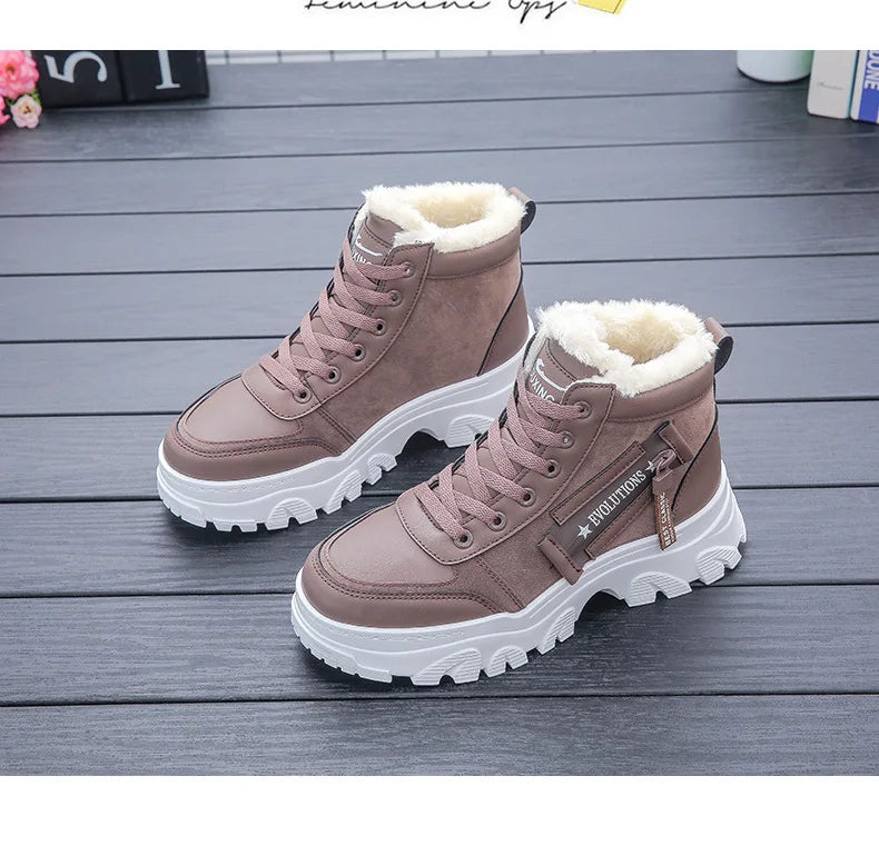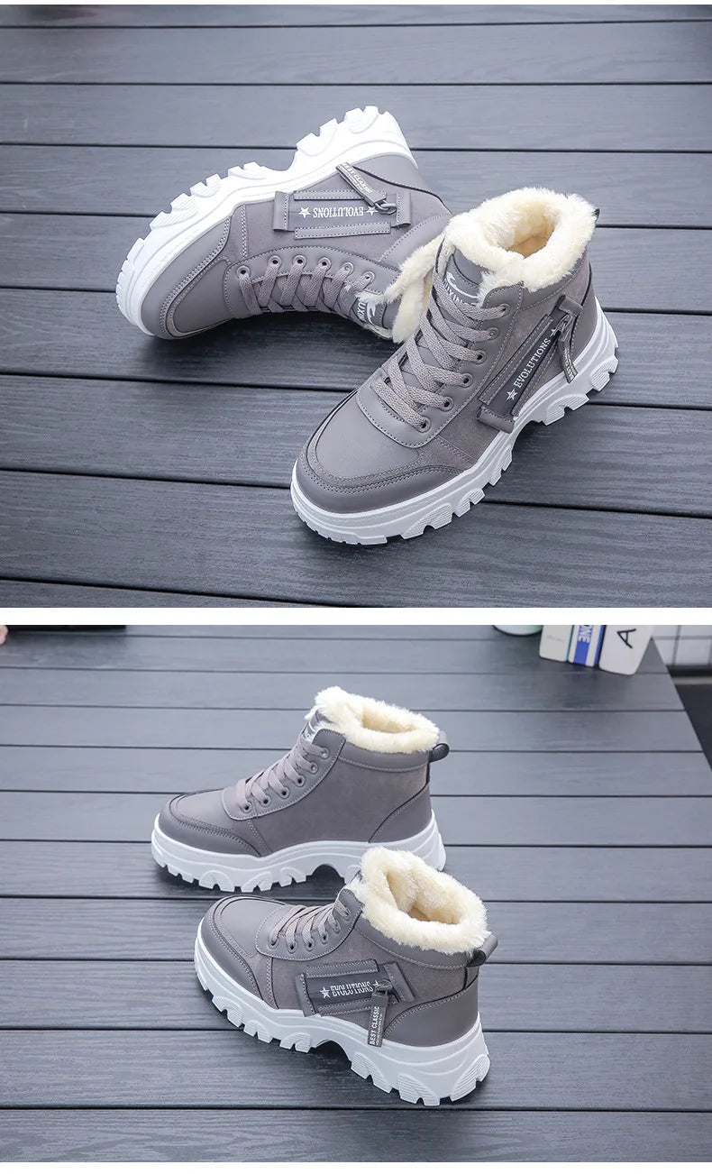 Their versatile high-top ankle design pairs effortlessly with jeans, leggings, or dresses, while the flat sole provides balance and all-day wearability. Finished with short plush insoles and thick cotton padding, these boots wrap your feet in cozy warmth while keeping your look effortlessly chic.