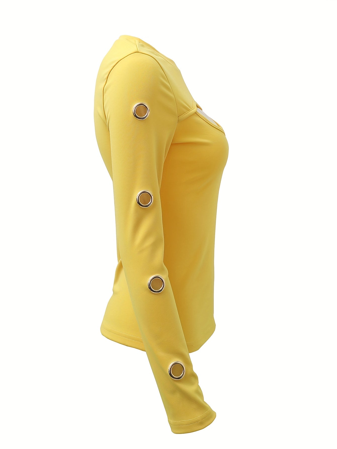 Elegant Black Long Sleeve Top – Gold Button Detail Round-Neck Tee