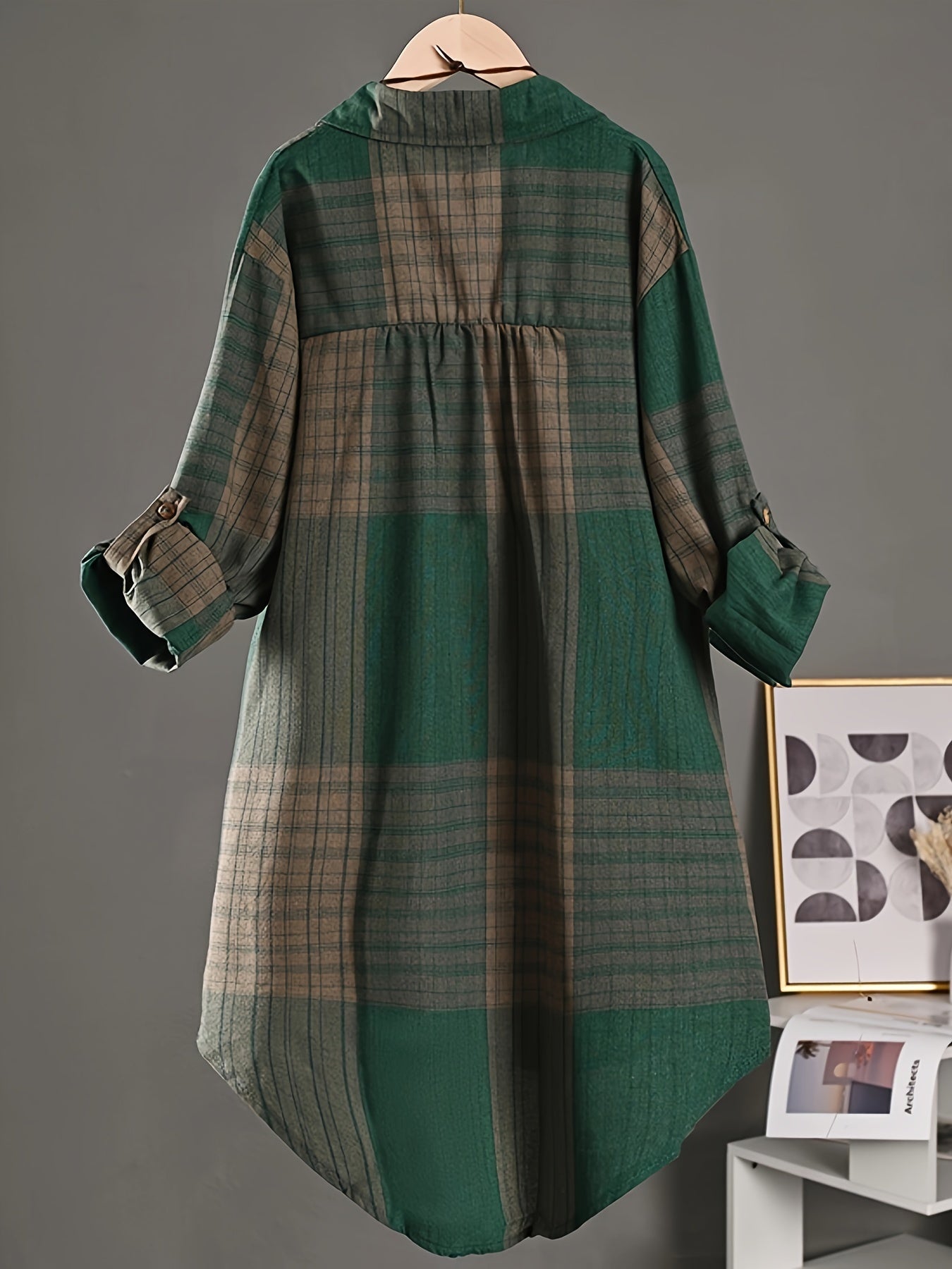 Women’s Vintage Plaid Shirt – Loose Button-Up All-Season Top
