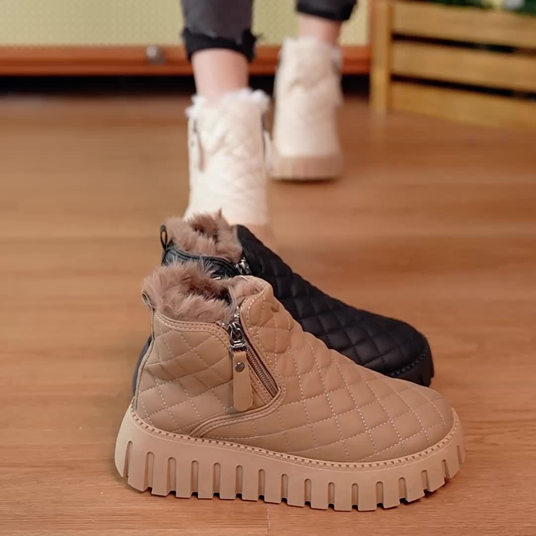 Women’s Faux Fur Ankle Boots – Zipper Winter Shoes with Arch Support & Grip
